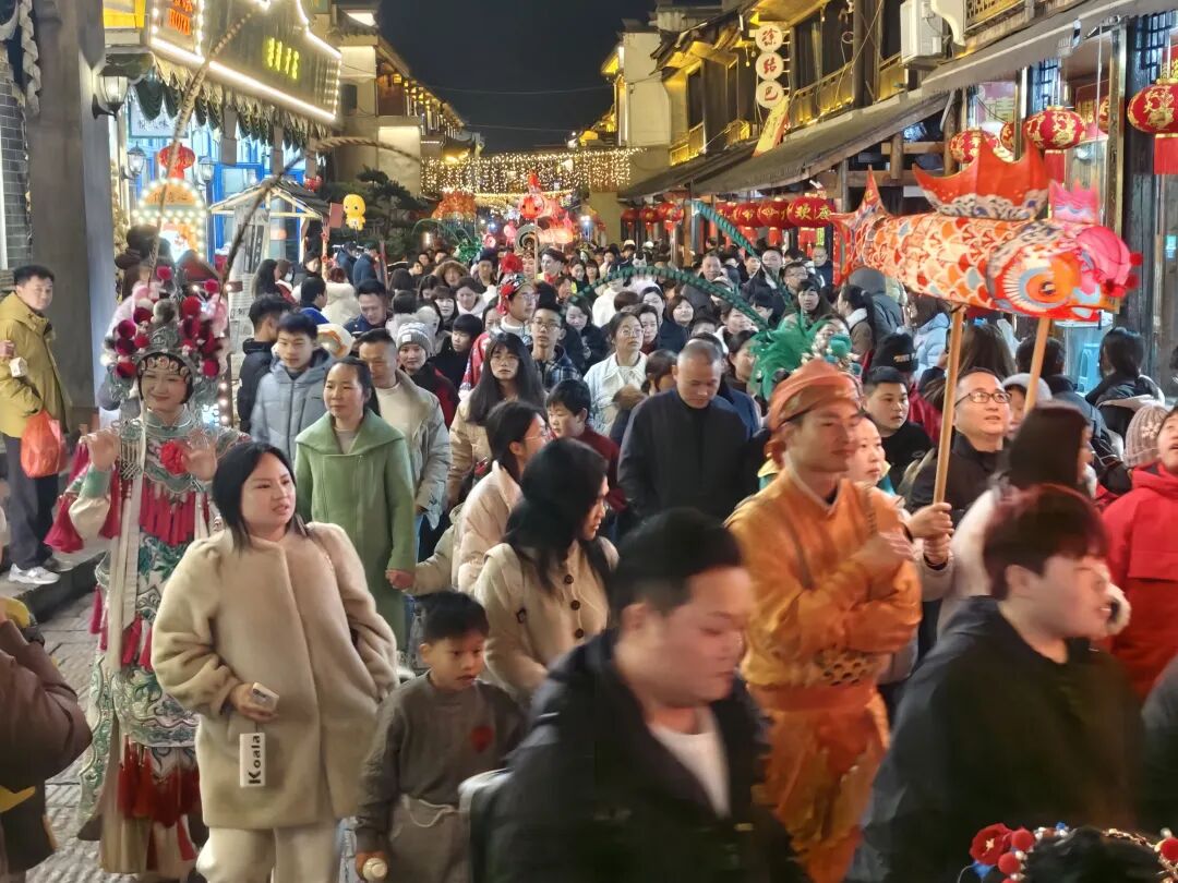 长沙铜官窑文化旅游度假区依托唐文化底蕴,打造了集非遗体验、国风游乐、民俗展演、科技光影于一体的“铜官窑国风乐园·新春游园会”活动,设置了百米灯笼长廊、“天官赐福”神仙巡游、盛唐马术体验、“天外飞仙”威亚表演等十余种古风互动项目,铜官窑国风乐园连续包揽美团、大众点评、抖音平台景区榜单前三。